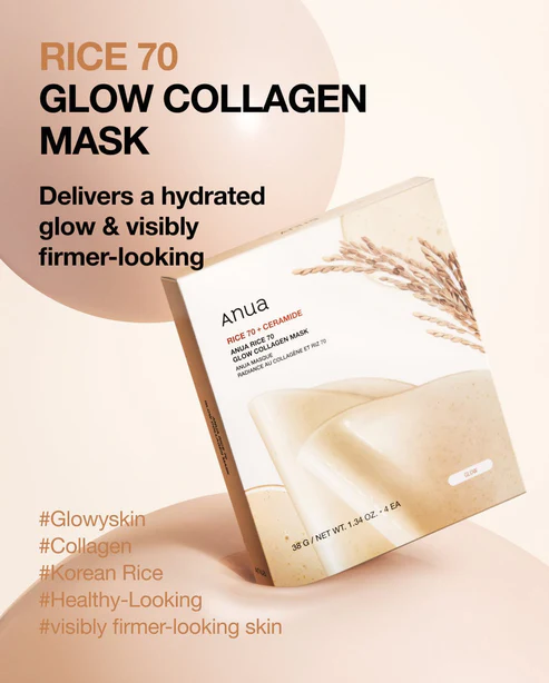 Η μάσκα κολλαγόνου Anua Rice 70 Glow με 70%